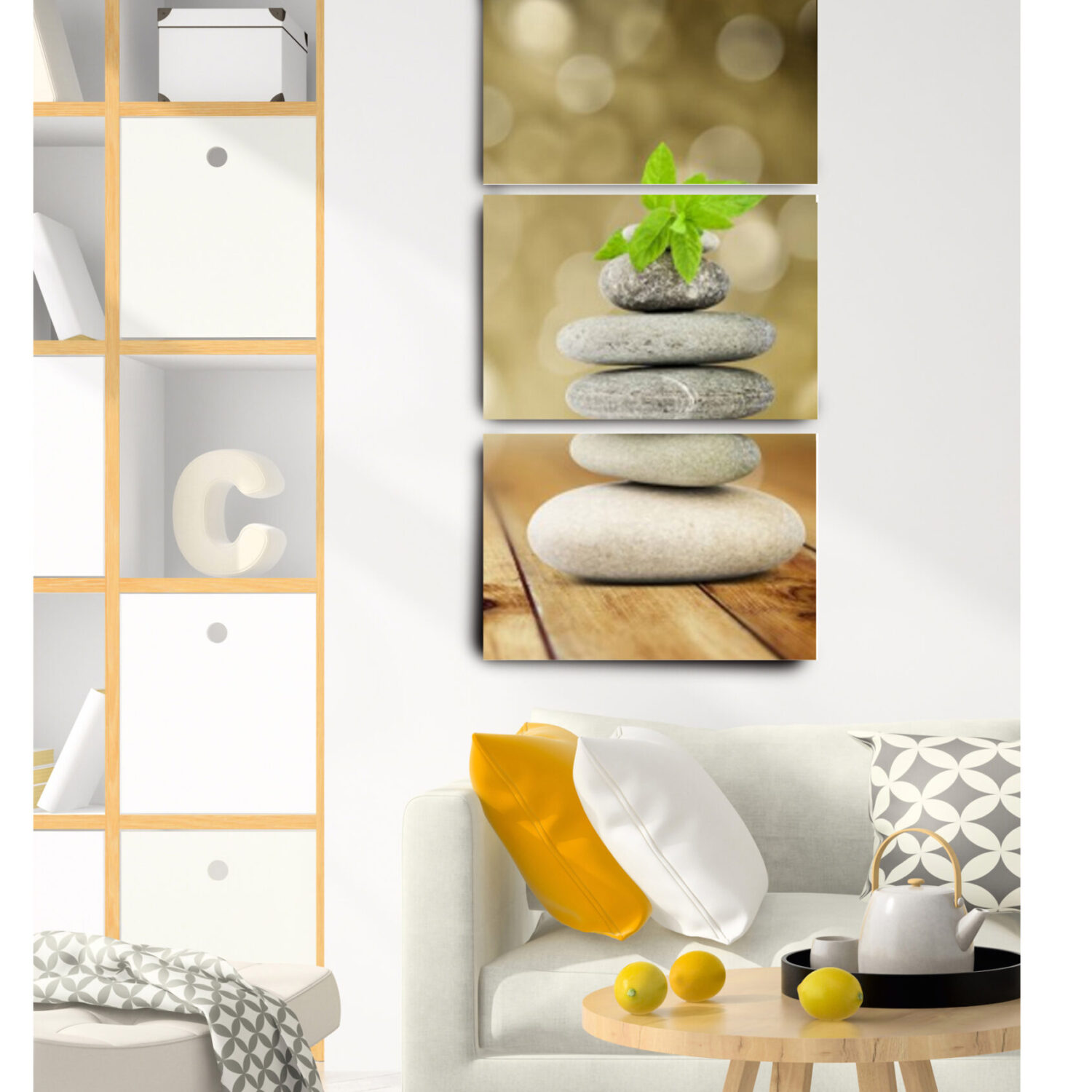 Quadro 3 Telas Decorativo Paz & Equilibrio Vertical em Poliester 60x120cm