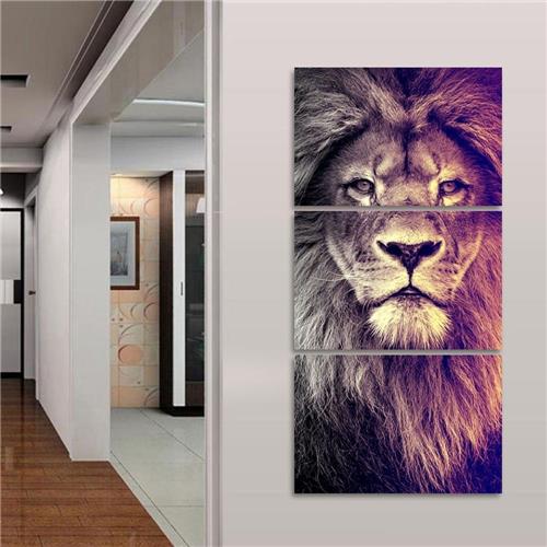 Kit 3 Quadros mosaico de Leão Vertical impressos em equipamento de alta resolução e com fidelidade de cores (impressora 6 cores) em tecnologia latex (100% ecológico e sem cheiro) em vinil e aplicados em MDF 3MM. Moldura em madeira de pinus (100% madeira) com acabamento em gesso laqueada (moldura 100% lisa).
